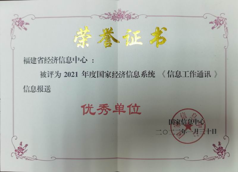 中心荣膺国家信息中心“信息报送优秀单位”称号