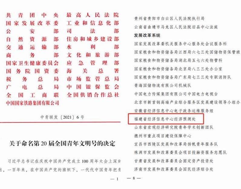省经济信息中心网络通讯处荣获2019-2021年省级青年文明号称号