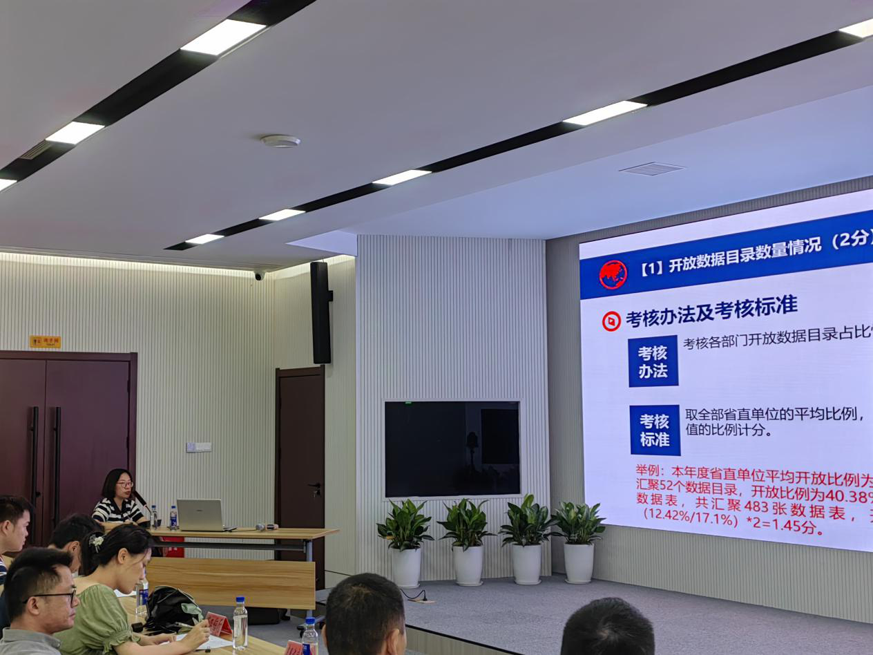 9月19日,根据省数字办工作部署,由中心负责2023年省直单位和设区市数字政府绩效考核指标专场培训会。培训面向省直单位和设区市分别开展两场培训,省直部门约50人、设区市相关部门约80人参加培训。培训内容主要介绍了本年度绩效考核背景与考核原则,针对我省数字政府建设在政务服务、数据开放共享、政务运行、安全体系、平台支撑、视频会议等方面的考核指标内容、考核细则、现状情况、存在问题以及典型案例进行逐一讲解与分析,并与各级各部门进行广泛的交流与讨论。