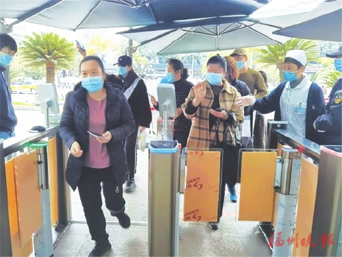 想要进入医院的人们,只要刷一下身份证或扫描八闽健康码,即可自助通过闸机,无需像以前那样排队扫码、向工作人员出示健康码、测量体温,实现了“秒速”入院。