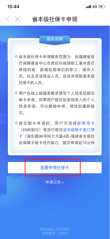 3、本服务仅支持已办理省本级医保用户首次领卡,如需补卡、换卡,请前往省本级制卡窗口领卡(湖东路99号标力大厦4层-福建省本级社会保障卡制卡经办窗口)办理,或拨打12333人社厅热线进行咨询。