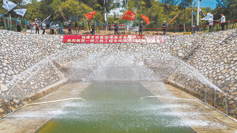 为破解缺水难题,“一闸三线”工程于2018年5月全面动工。该工程全长约181.58公里,总投资约61.6亿元,供水范围覆盖平潭及闽江口南岸城市群。工程全线通水后,年供水量约8.7亿立方米,惠及580万人。此前,“一闸三线”工程中的福州仓山、长乐、福清等地已实现通水。此次平潭输水线正式通水,可彻底满足平潭经济社会用水需求。