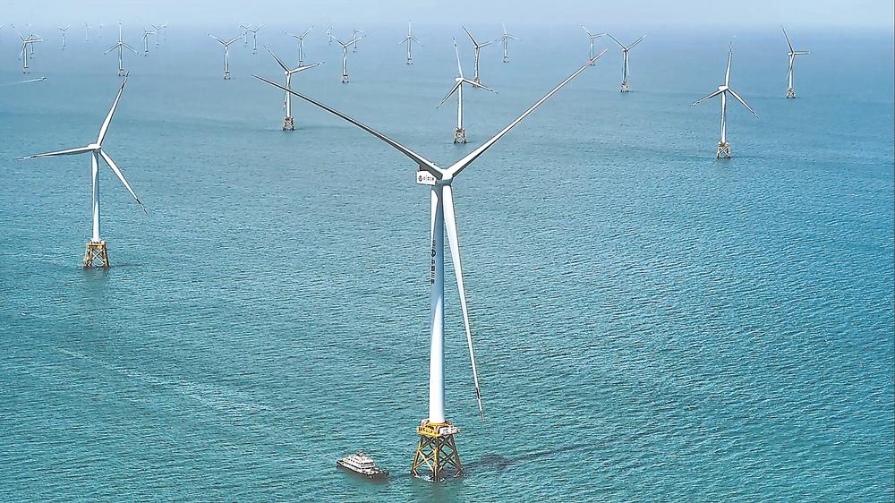 7月19日14时30分,全球首台16兆瓦超大容量海上风电机组在福建海上风电场成功并网发电(上图),标志着我国海上风电大容量机组研发制造及运营能力再上新台阶,达到国际领先水平。