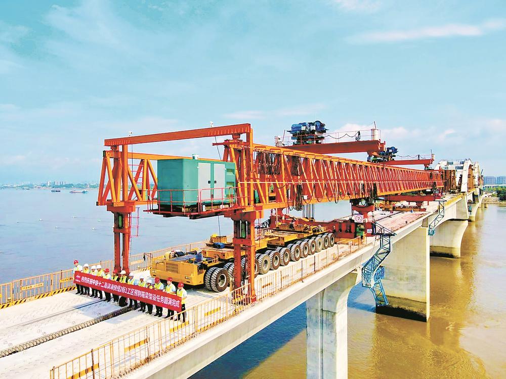 22日,随着最后一孔40米小箱梁顺利跨江架设,标志着由中铁十二局承建的福州至长乐机场城际铁路(滨海快线)帝封江站至祥谦站高架区间小箱梁架设任务圆满完成,为下一步轨道铺设奠定了基础。据悉,滨海快线是福州“一城双核”的快速轨道交通连廊,将确保滨海新城与中心城区实现快速互连互通。(曾剑锋 摄)