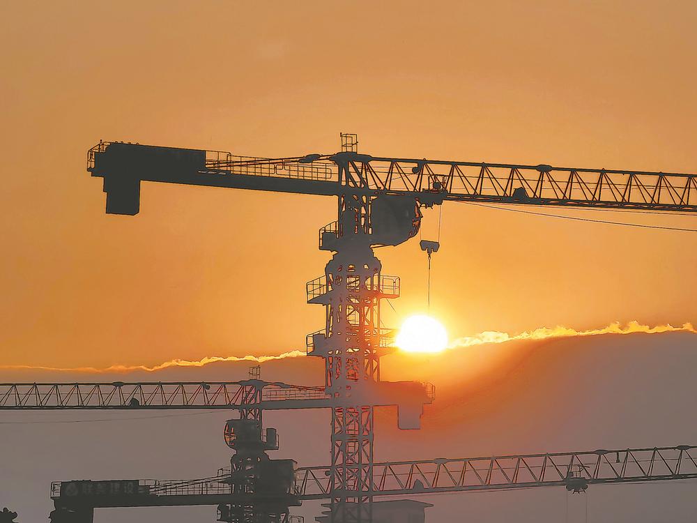 7日傍晚,在德化县许厝片区城市综合体项目建设现场,挥舞的塔吊机械臂与夕阳交相辉映,呈现热火朝天的施工场景。该项目位于德化县浐溪以南老城区,总投资25亿元,以城市新地标、城市新客厅为定位,将打造成为服务设施完善、陶瓷文化凸显、滨水生态融合的现代化城市综合体。(陈志明 摄)
