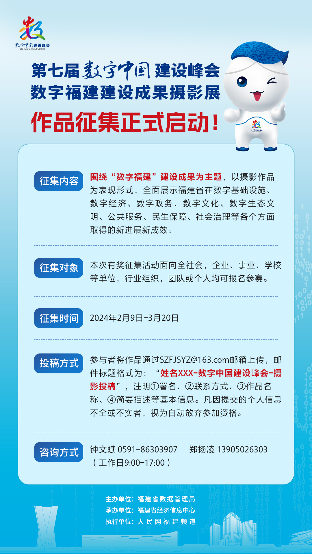 围绕数字福建建设成果为主题,以摄影作品为表现形式,全面展示福建省在数字基础设施、数字经济、数字政务、数字文化、数字生态文明、公共服务、民生保障、社会治理等各个方面取得的新进展新成效。