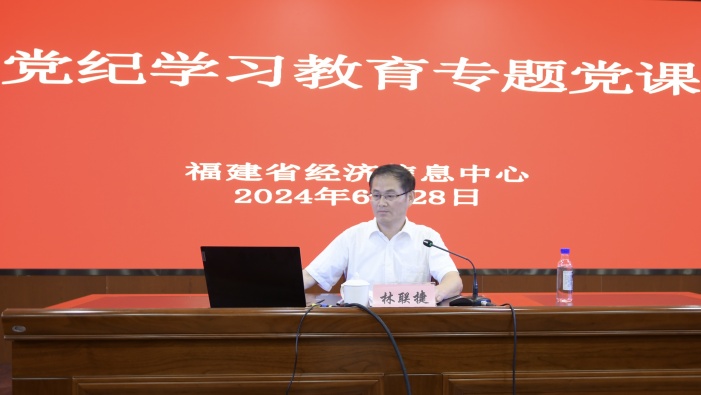 按照中心党纪学习教育工作安排,6月28日,省经济信息中心党委书记、主任林联捷以“加强党的纪律建设,为推进中心事业高质量发展提供坚强保障”为主题,给中心党员干部讲授专题党课。