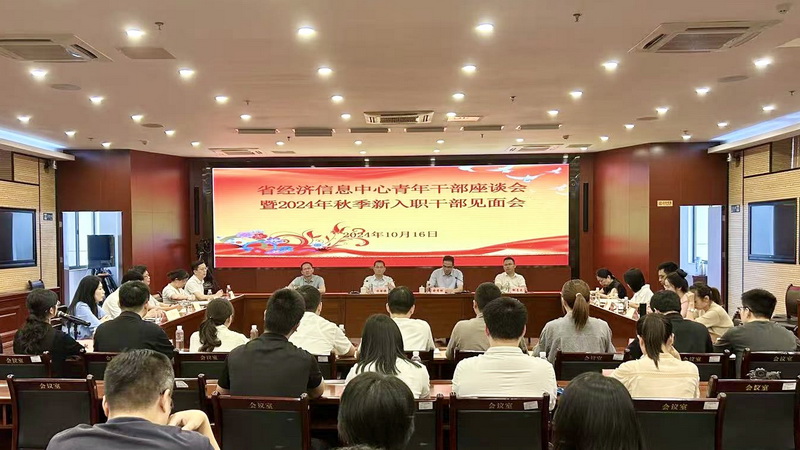 近日,省经济信息中心组织召开青年干部座谈会暨2024年秋季新入职干部见面会。中心党委书记、主任林联捷出席并讲话,中心党委副书记、副主任俞希标主持会议,中心各处室主要负责同志、40岁以下青年干部及新入职干部参加会议。