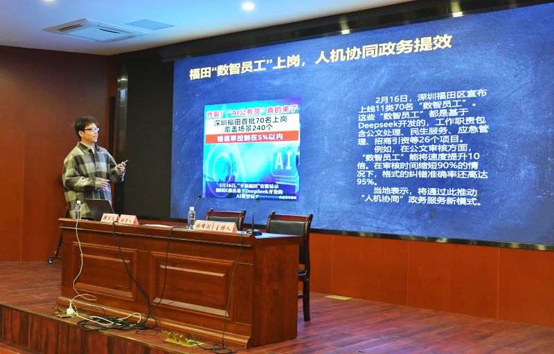 经济预测处青年干部李俊贤以中国AI科技出海为切入点,介绍了DeepSeek大模型性能、独特优势及在政务信息化中的实际应用,并现场演示DeepSeek相关操作,让大家加深了对DeepSeek技术的理解。信息资源处青年干部郑子文紧密联系中心工作实际,从DeepSeek技术特点、处室业务和DeepSeek的适配度、DeepSeek部署与使用等角度进行交流,分享了学习和使用DeepSeek的思考和感悟。通过学习,中心干部对于DeepSeek在今后工作中的运用都十分期待,并表示,这次学习交流是一次站在科技前沿、紧贴工作实际的具象化学习,将结合岗位实际,深化AI大模型在政务领域的应用。