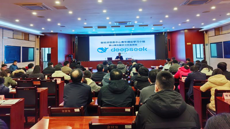 2月21日,省经济信息中心青年理论学习小组开展DeepSeek专题学习活动,活动主题为推动DeepSeek与政务数智化深度融合,助力打造更高水平的数字政府。中心领导班子成员及全体党员干部参加学习。