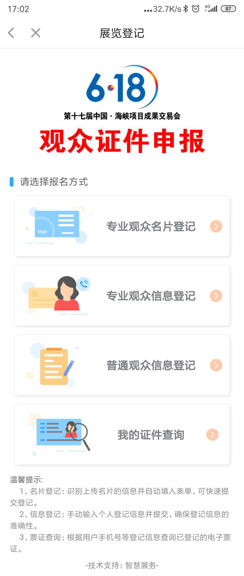 第十七届中国·海峡项目成果交易会(“6·18”)将于6月17日—21日在福州海峡国际会展中心举行。闽政通APP作为观众证件申报官方渠道之一,可为观众提供快捷、免费的报名服务。