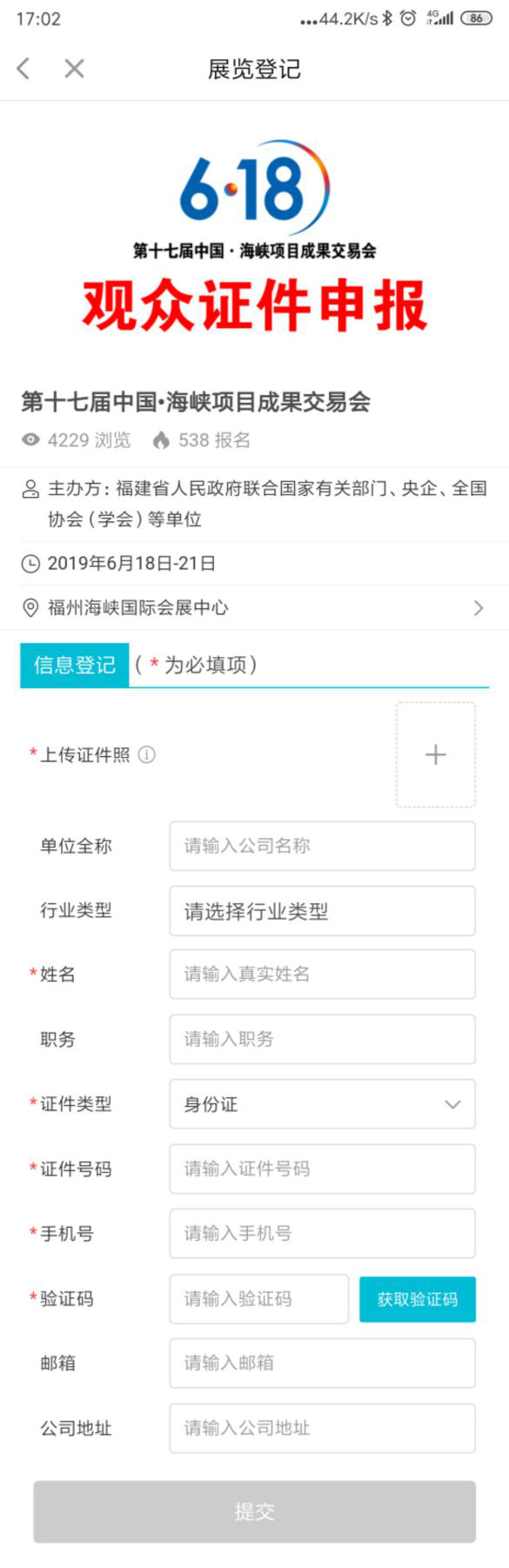 在闽政通APP首页点击轮播图片进入“6·18”观众证件申报平台。