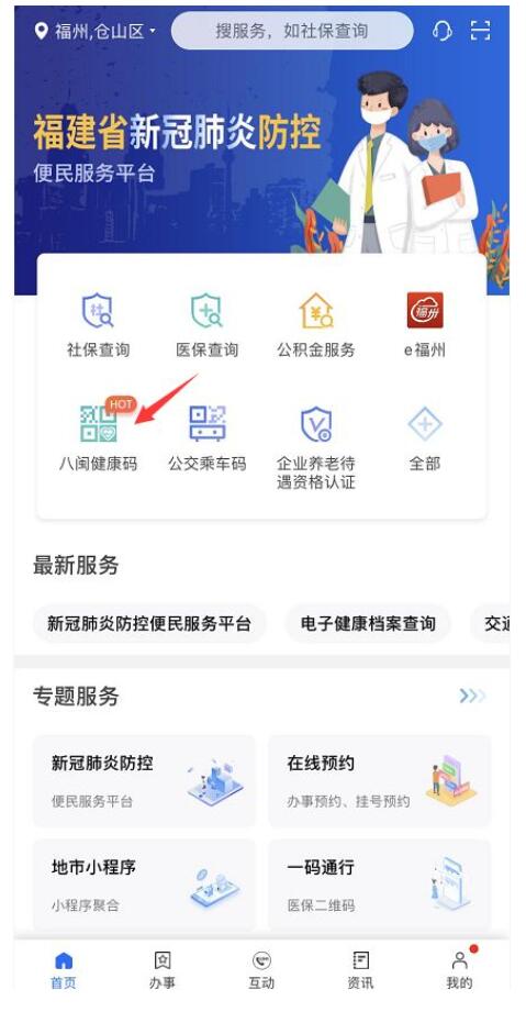 2.通过首页“八闽健康码”进入服务;