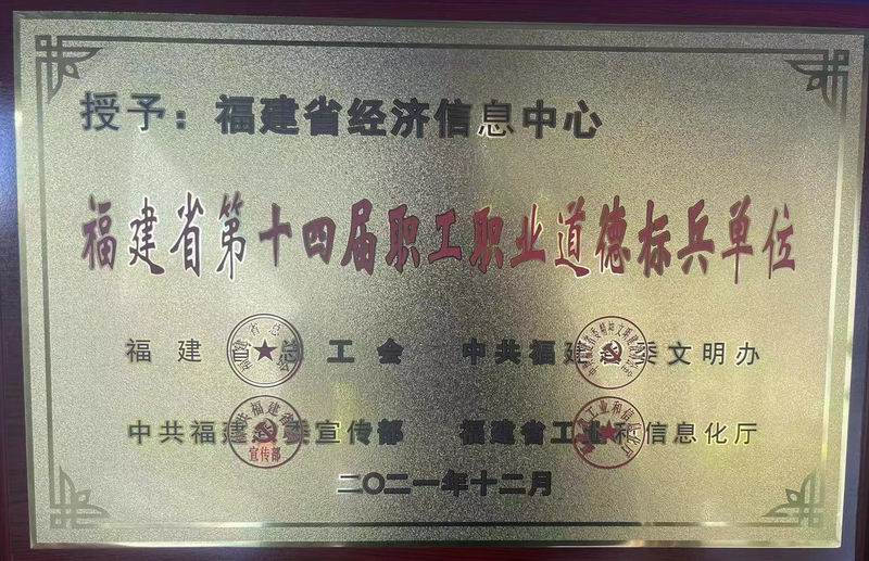 近日,福建省总工会公布了第十四届福建省职工职业道德建设“双十佳”单位、个人评审结果,中心获评“第十四届(2019—2020年度)福建省职工职业道德建设标兵单位”。